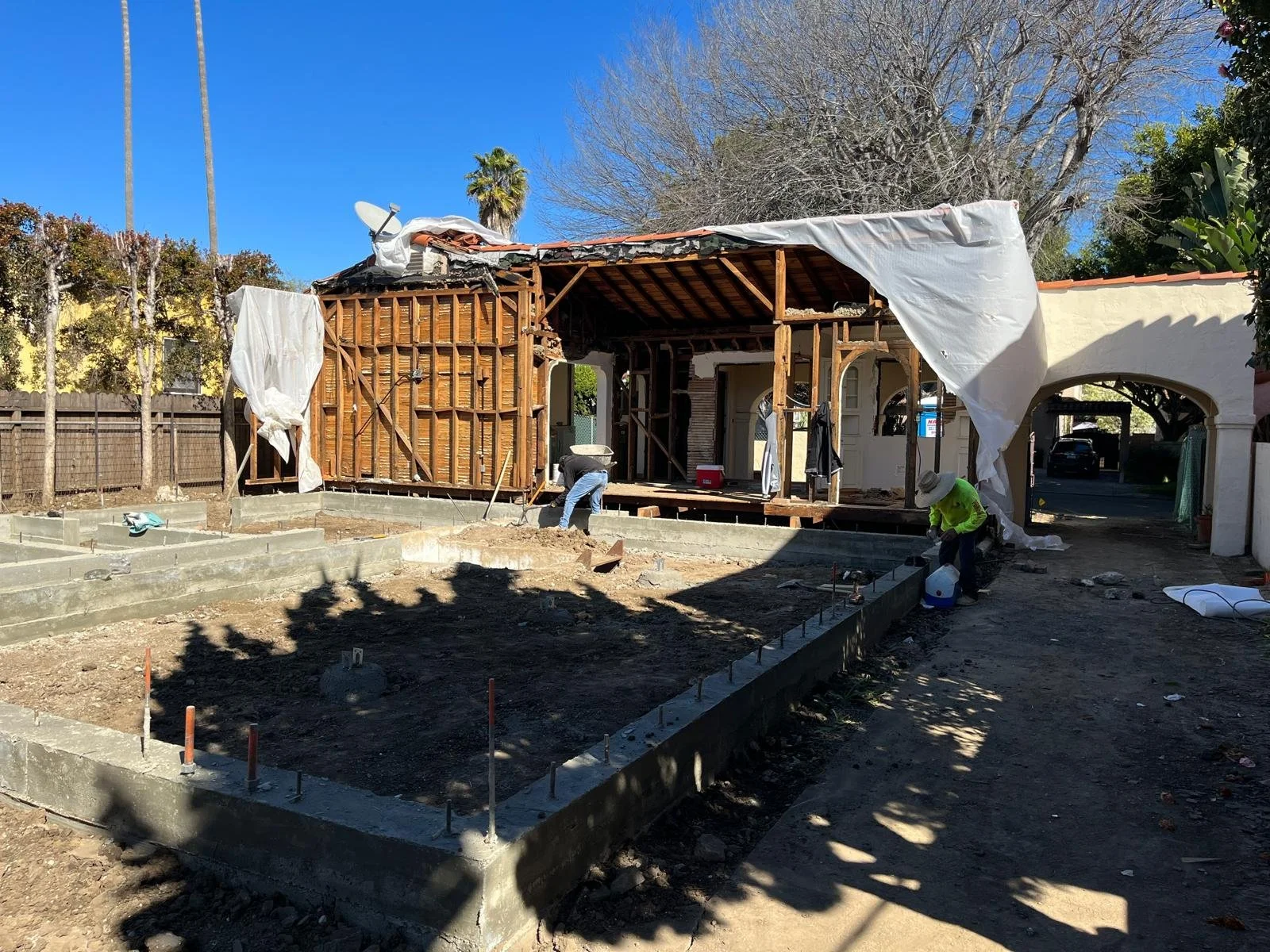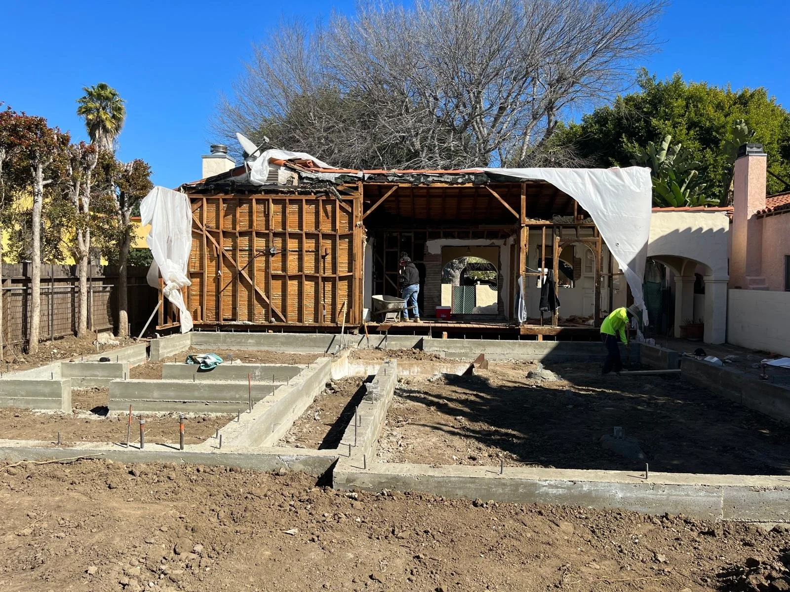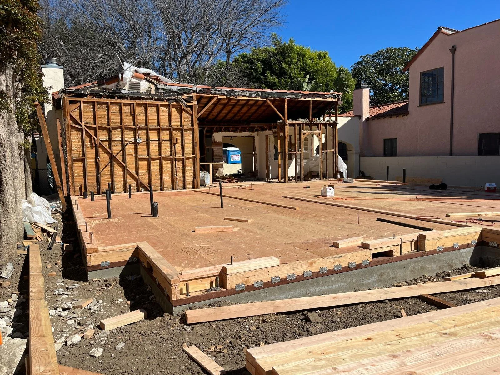 The project also included building a new pool within a limited lot, requiring tight coordination between structural work, exterior construction, and interior sequencing.